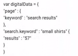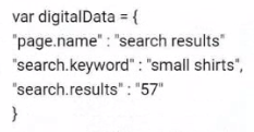 Business Requirement: The company needs to report on internal search keywords and their contribution to revenue by creating the digitalData.search.keyword data object in the data layer.
