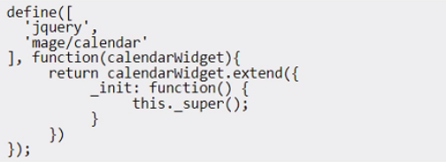 An Adobe Commerce developer wants to add a custom widget that extends the default Calendar Widget. What would the contents of this file look like?