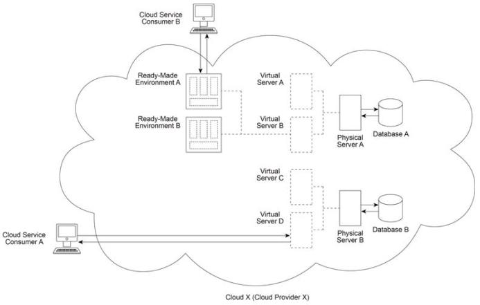 Cloud Provider X (which owns Cloud X) deploys two physical servers (Physical Servers A and B) and two databases (Databases A and B). Virtual Servers A and B are hosted by Physical Server A and Ready-Made Environments A and B are hosted by Virtual Server B . Virtual Servers C and D are hosted by Physical Server B . Cloud Service Consumer A regularly accesses Virtual Server D in order to test and deploy a new cloud service that was developed on-premise by the cloud consumer organization operating Cloud Service Consumer A . Cloud Service Consumer B (operated by a different cloud consumer organization) has been regularly accessing Ready-Made Environment A in order to develop and deploy a different new cloud service. The cloud consumer organizations that own and operate Cloud Service Consumers A and B will soon be ready to launch their respective cloud services for use by their customers. Both cloud consumer organizations are concerned that Cloud X does not provide sufficient security and they demand that Cloud Provider X take the necessary steps to mitigate the denial of service, insufficient authorization and overlapping trust boundaries security threats.