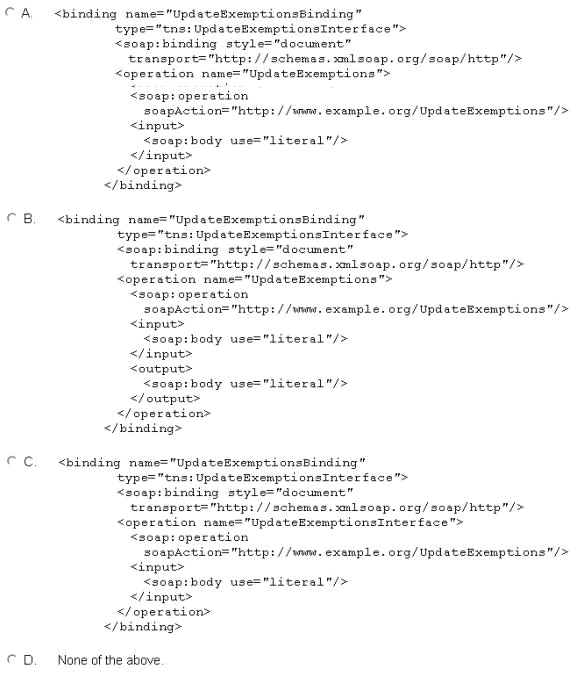 You now need to start on the concrete description by adding an appropriate binding element. Which of the following is correct?