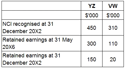 ABacquired 90% of the equity ofYZon31 December 20X2. On the same date YZ acquired 60% of the equity shares ofVW for $750,000. AB has no other subsidiaries.