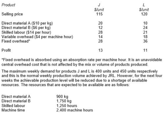 JRL manufactures two products from different combinations of the same resources. Unit selling prices and unit cost details for each product are as follows:
