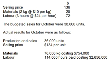 GH manufactures a product using skilled labour and high quality materials. The company operates a standard costing system and a just-in-time (JIT) purchasing and production system. The standard selling price and variable costs for one unit of the product are as follows: