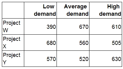 The following payoff table has been prepared to show the outcomes in $000 at three possible levels of demand: