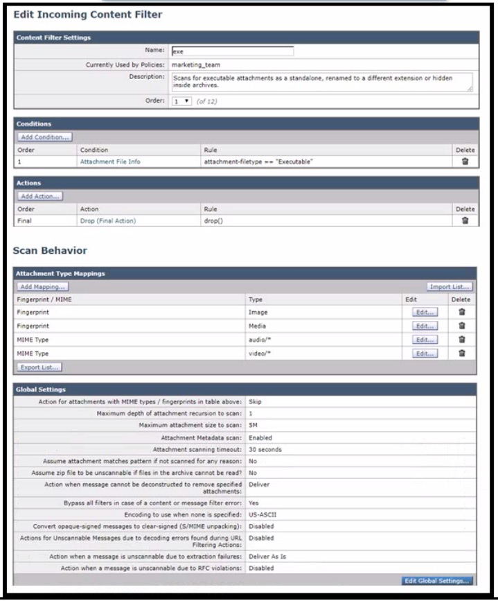 Which configuration allows the Cisco Secure Email Gateway to scan for executables inside the archive file and apply the action as per the content filter?