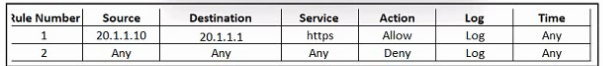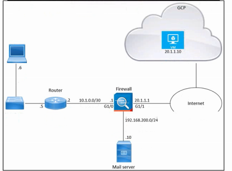 Refer to the exhibit. An engineer must provide HTTPS access from the Google Cloud Platform virtual machine to the on-premises mail server. All other connections from the virtual machine to the mail server must be blocked. The indicated rules were applied to the firewall; however, the virtual machine cannot access the mail server. Which two actions should be performed on the firewall to meet the requirement? (Choose two.)