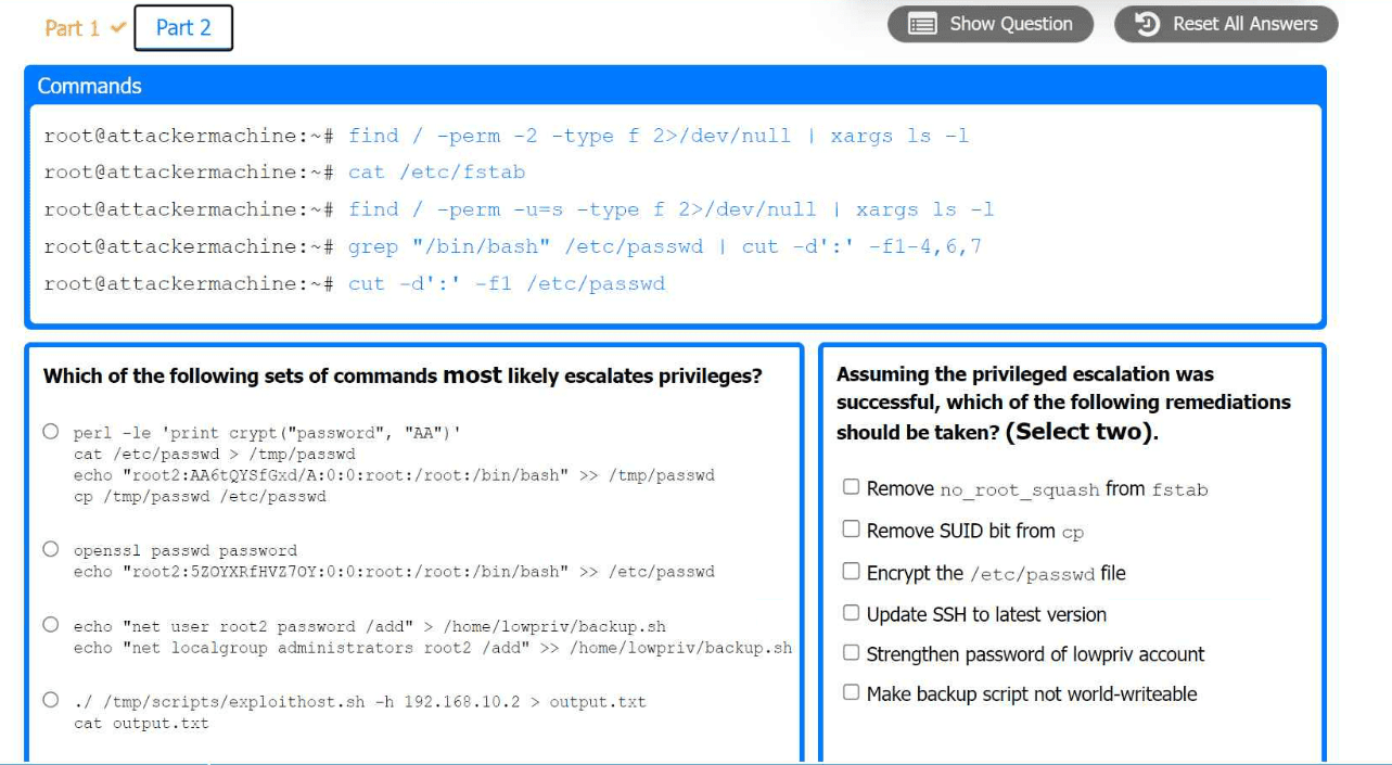 Apply the remediation commands to secure the system and verify the changes have been implemented.