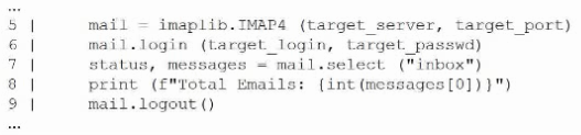 A penetration tester creates the following Python script that can be used to enumerate information about email accounts on a target mail server: