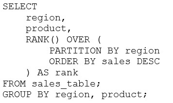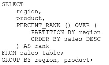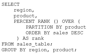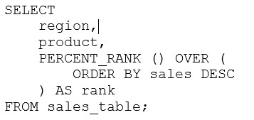 A data analyst has been asked to use the below table sales_table to get the percentage rank of products within region by the sales: