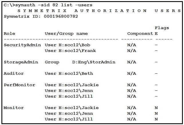 Who has access to run the symaudit --list commands based on the symauth output shown in the exhibit?