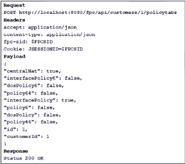 Which statement is true about the FortiManager ADOM policy tab based on the API request?
