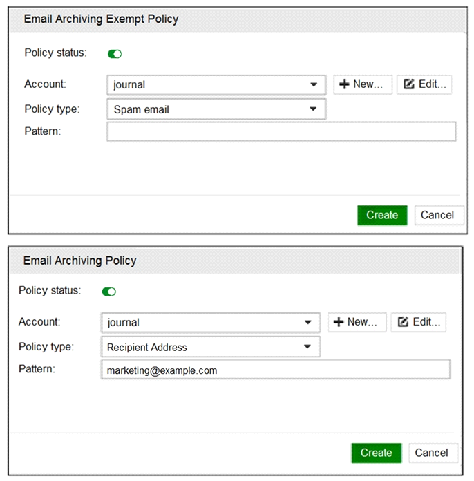 What two archiving actions will FortiMail take when email messages match these archive policies? (Choose two.)