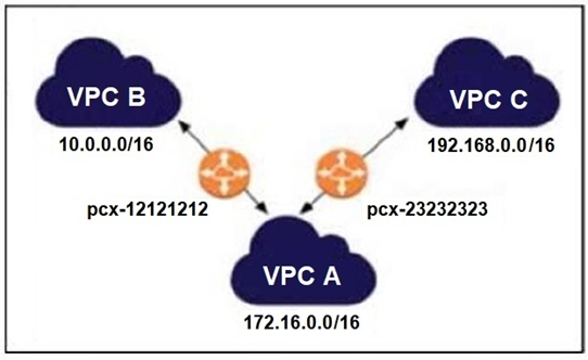 Option C is incorrect because associating pcx-23232323 with VPC B is not how VPC peering works.
