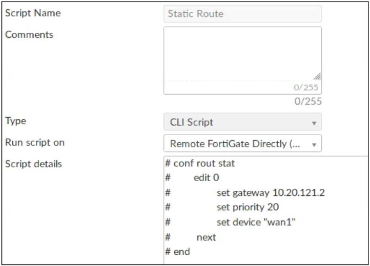Refer to the exhibit, which contains a CLI script configuration on FortiManager.