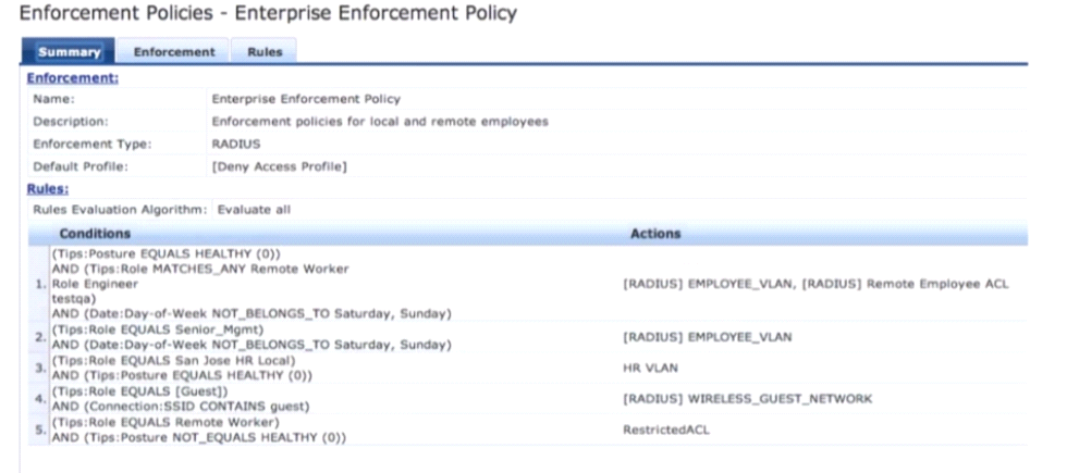 Based on the Enforcement Policy configuration, when a user with Role Engineer connects to the network and the posture token assigned is Unknown, which Enforcement Profile will be applied?