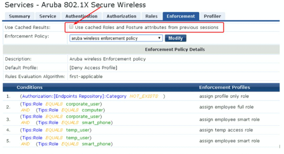 What is true regarding leaving the indicated option "Use cached Roles and Posture attributes from previous sessions" unchecked?