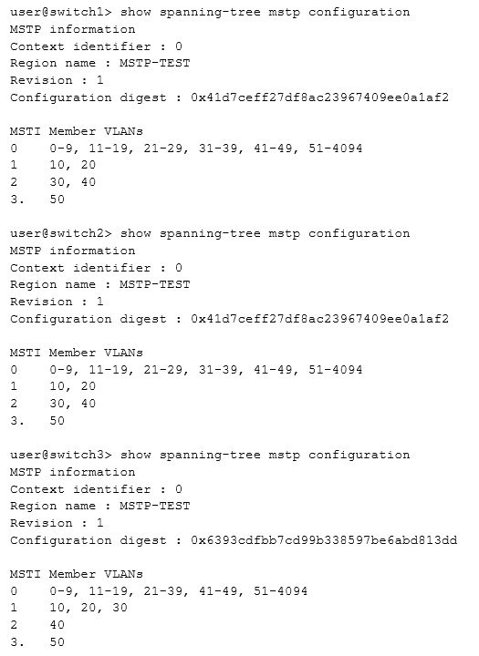 You have three switches, each with a trunk connection allowing all VLANs to the switches. CIST will coverage, however MSTP will not.