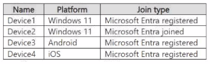 You have a Microsoft 365 E5 subscription that contains the devices shown in the following table.