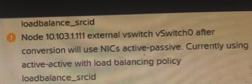 An administrator receive the warning massages shown in the exhibit while validating cluster conversion from EXSi to AHV.