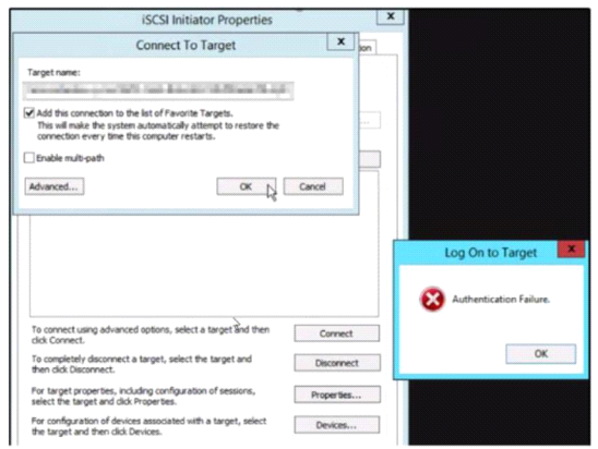 Upon attempting to reconnect, an error is displayed , as shown in the exhibit.