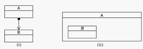 What is the difference between the relationships between A and B in diagram (i) and diagram (ii) in the exhibit?