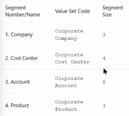 Know that the Company, LoB, Product, and Intercompany segments share the same value sets.