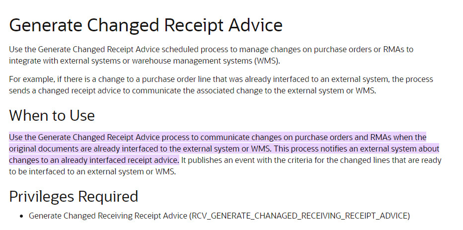 Which scheduled process communicates changes on purchase orders whose receipt advices are already interfaced to an external system?