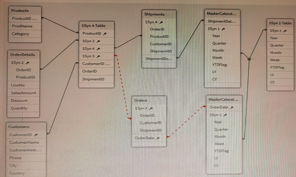 A data architect is working on a Qlik Sense app the business has created to analyze the company orders and shipments. To understand the table structure, the business has given the following summary:
