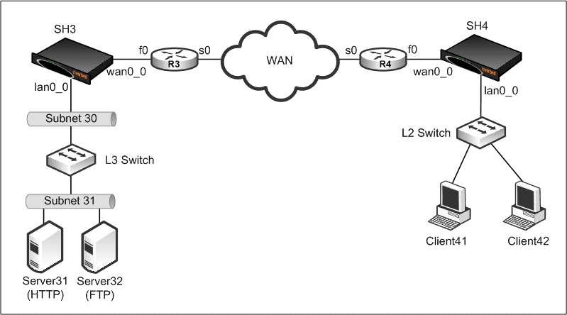 Client41 and Client42 have full access to the HTTP and FTP services provided by Server31 and Server32 respectively. They continue to have access to these servers after SH3 and SH4 are deployed. A quick check on SH3 and SH4 registers the connections from Client41 and Client 42 as pass-through traffic. Note that SH3 and SH4 are in auto-discovery mode. What are the likely causes? (Select 2)
