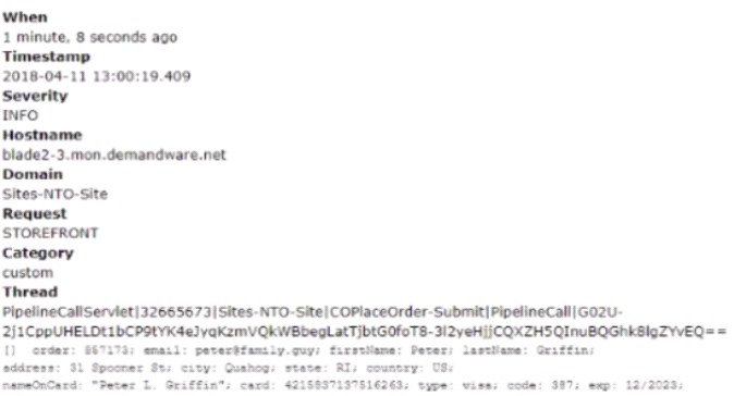 An Architect is performing an audit of production logs via Log Center and finds some potentially dangerous custom log output.