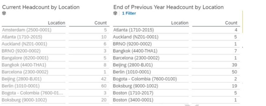 How would you configure a filter on the table End of Previous Year Headcount by Location to display data accurately?