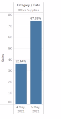 This will create a quick table calculation that shows the percent of total sales for each sub-category within each category. The visualization will look like this:
