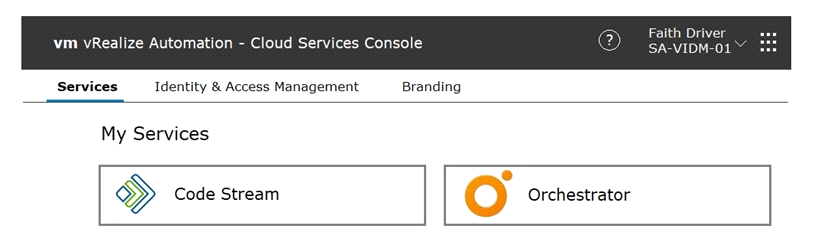 Within vRealize Automation (vRA), the administrator successfully updates the existing directory configuration to include the App-Dev-User group and then uses the Enterprise Groups feature to assign both organization and service roles to the App-Dev team. The administrator then logs into vRA, creates a dedicated App-Dev project and adds the appropriate development cloud zones, synchronizes the standardized blueprints from GitHub and releases them to Service Broker and configures the content sources so they show up in the service catalog. The administrator checks and is able to see the blueprints, and requests that the App-Dev team leader log in and access the catalog. The App-Dev team leader replies with the attached screenshot and requests more information about where to find the service catalog.