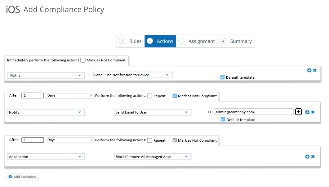An administrator has set up an iOS compliance policy for unwanted apps.